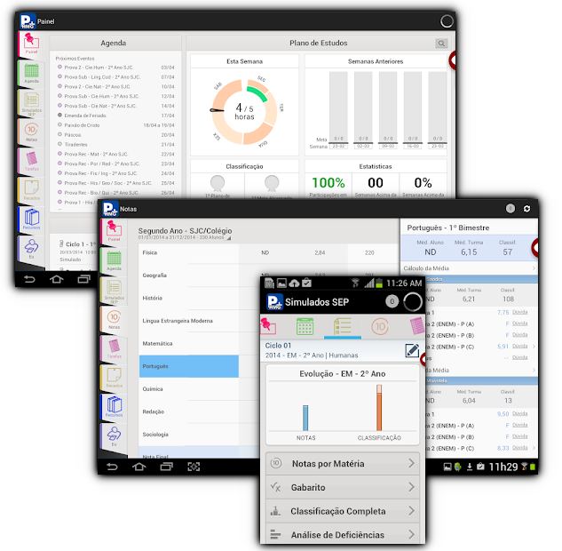 O P+ é o aplicativo do Poliedro que auxilia o aluno com informações acerca dos resultados dos simulados.